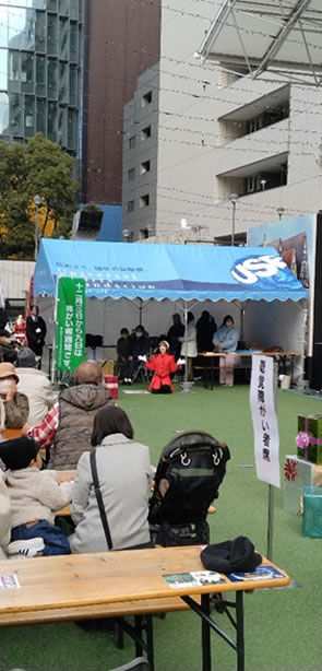 天神クリスマスマーケットとの連携により、イルミネーションに彩られた会場では、真北聖子さんのトーク&ライブをはじめ、音楽・ダンス・バザーなど多彩なプログラムが行われ、多くの来場者で賑わいました。
